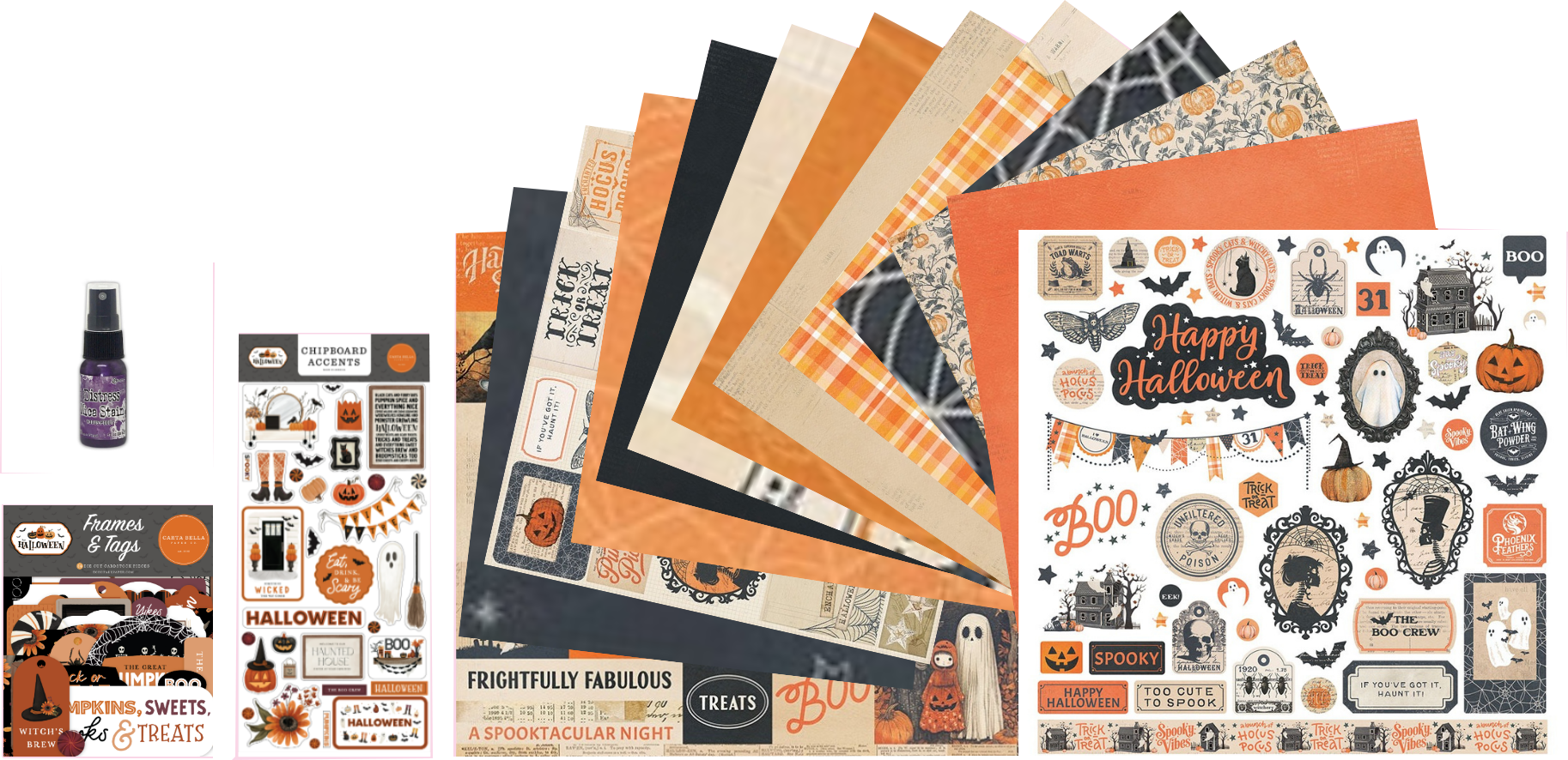 Cozy up your creativity with the Halloween Junque Collection by Collection Pack. This spook-tacular kit blends vintage charm with warm autumn vibes, featuring playful pumpkins, eerie florals, spider webs, spooky silhouettes, and rich textures in classic Halloween hues like orange, black, cream, and charcoal. Perfect for scrapbooking frightful nights, haunted house adventures, or your favorite fall traditions, this collection brings a touch of whimsy and warmth to every page. With festive patterns, nostalgic cut-aparts, and delightfully creepy stickers, your memories will come to life in the most enchanting way. Just add your photos and let the Halloween magic shine through!
